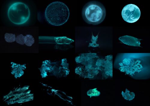 Jérémie Brugidou propose des œuvres bioluminescentes à un « public » non-humain sous-marin, où l’humain est accepté. Ces pièces vivantes semi-artificielles, composées avec des bactéries, et immergées entre quelques mètres et 40 mètres de fond, posent un certain nombre de questions, d’ordre épistémologique, esthétique, pratique et éthique. Elles l’encouragent à réfléchir plus généralement à la dynamique des images et de l’imaginaire dans la construction des relations humains / non-humains. La bioluminescence est une apparition éphémère sur fond d’obscurité avec des significations multiples. Comment ramener cet apprentissage à terre, dans le cadre de dynamiques à priori plus spécifiquement humaines, et sous la forme de documentaires ethnographiques de création ?